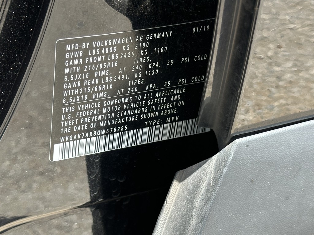 | VIN #: | WVGAV7AX8GW576285 |