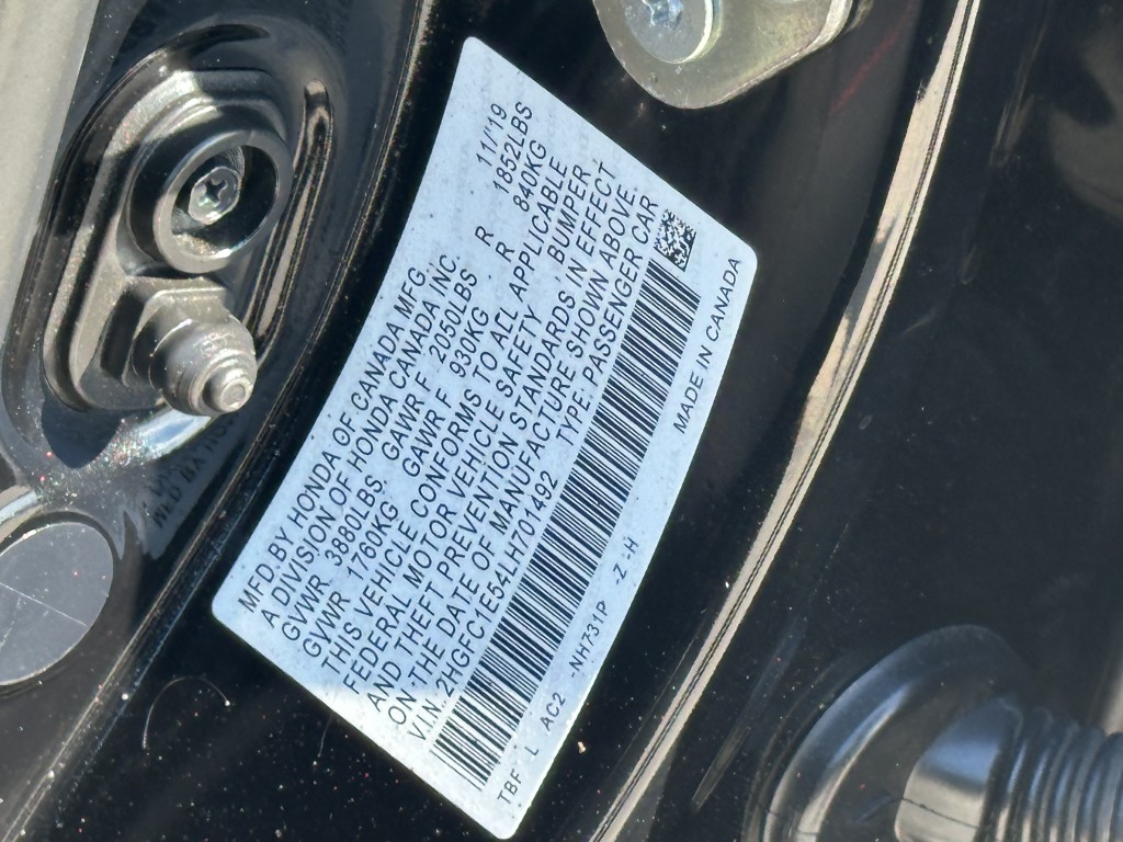 VIN #: | 2HGFC1E54LH701492 |