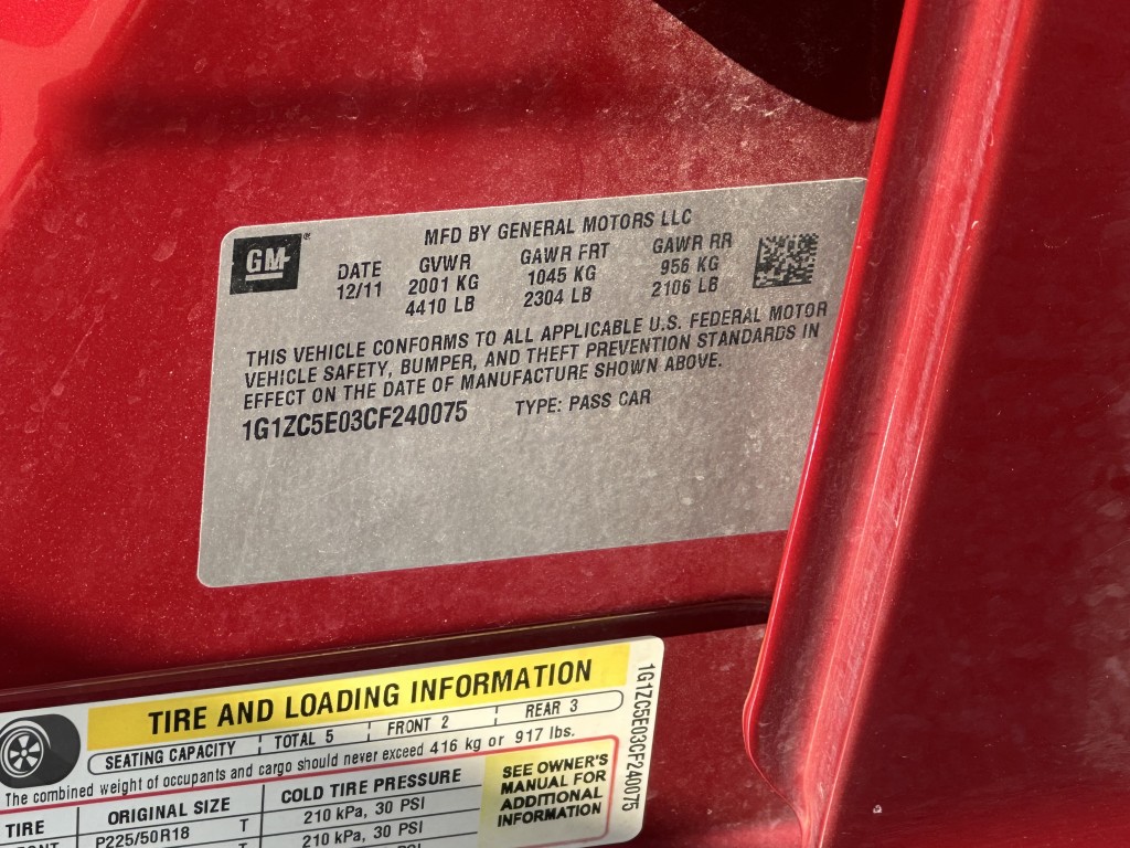 VIN #: | 1G1ZC5E03CF240075 |