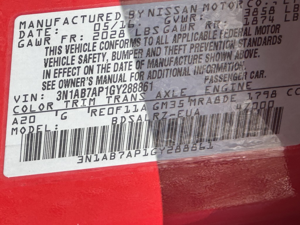 VIN #: | 3N1AB7AP1GY288861 |