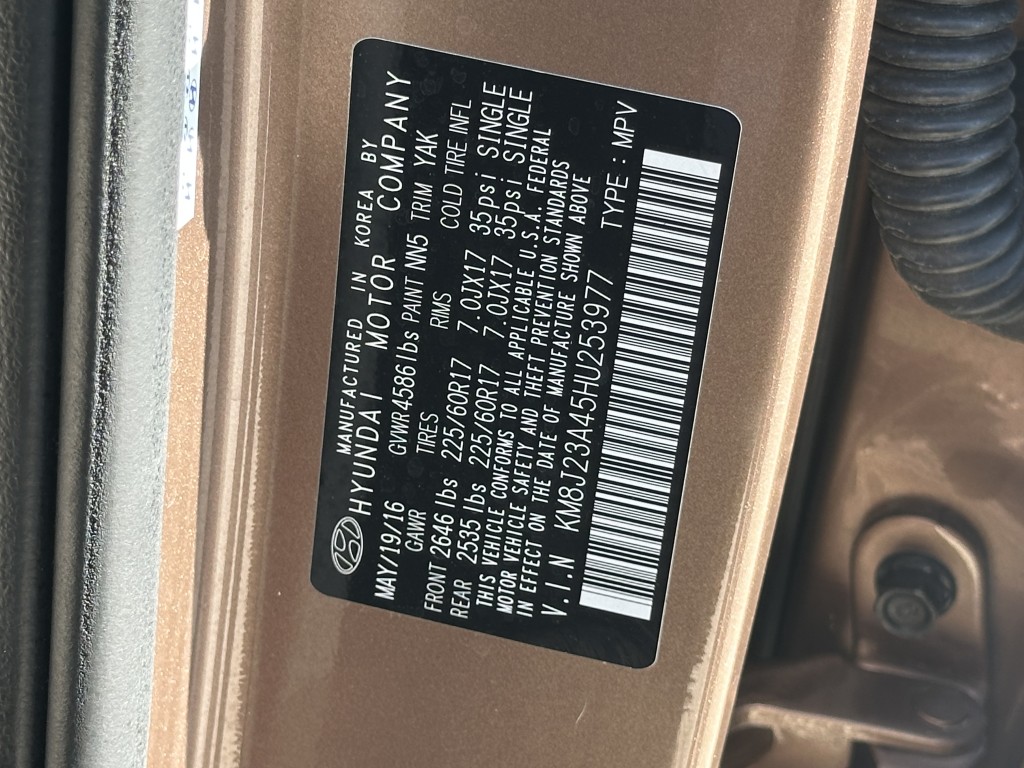VIN #: | KM8J23A45HU253977 |