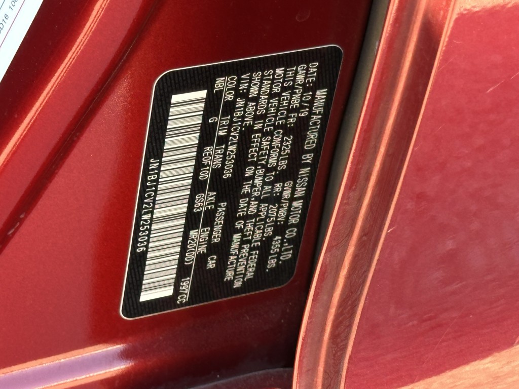 VIN #: | JN1BJ1CV2LW253036 |