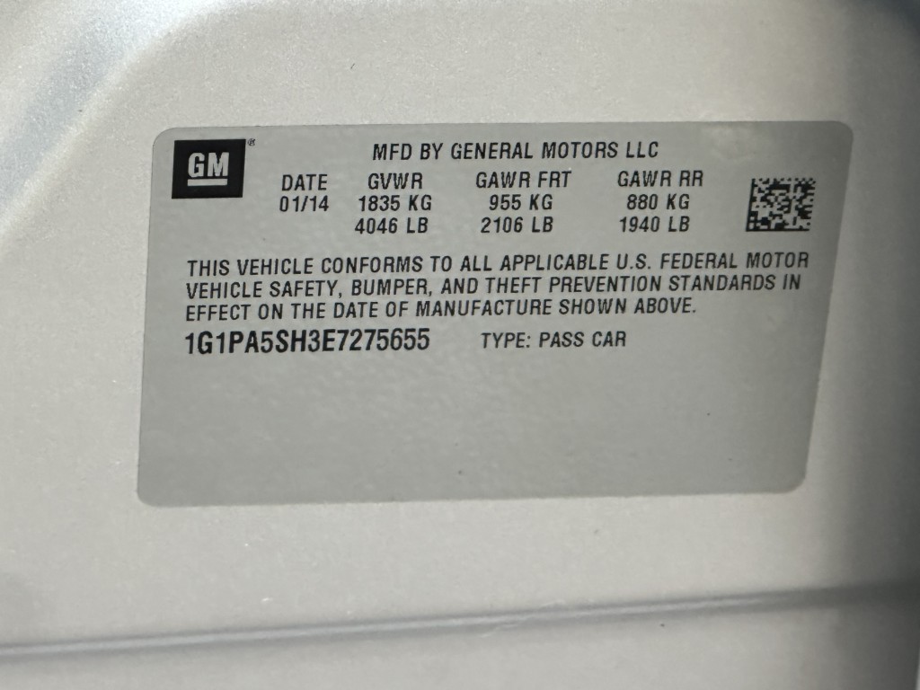 | VIN #: | 1G1PA5SH3E7275655 |