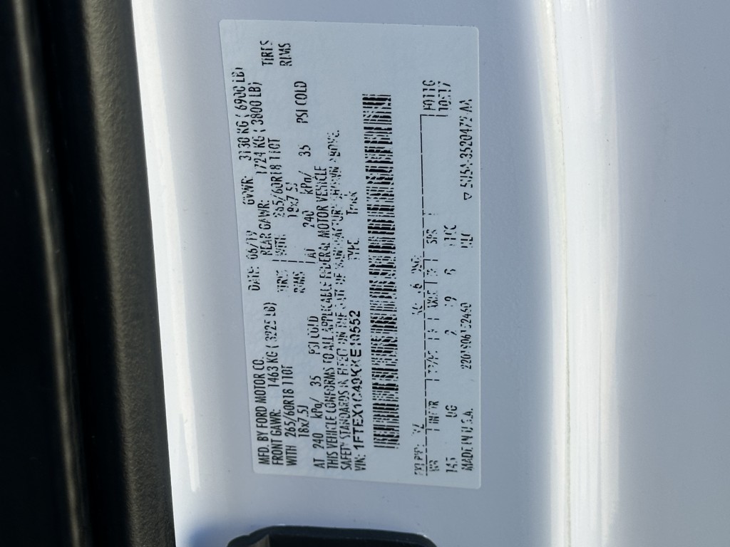 | VIN #: | 1FTEX1C49KKE10552 |