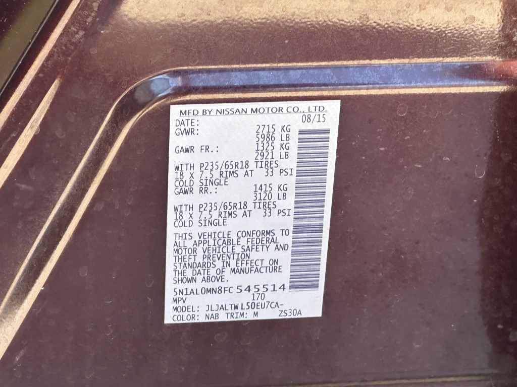 | VIN #: | 5N1AL0MN8FC545514 |