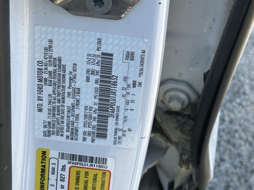 | VIN #: | 3FA6P0LU1JR118652 |
