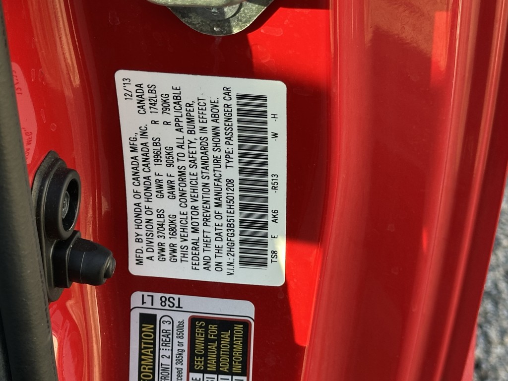 | VIN #: | 2HGFG3B51EH501208 |