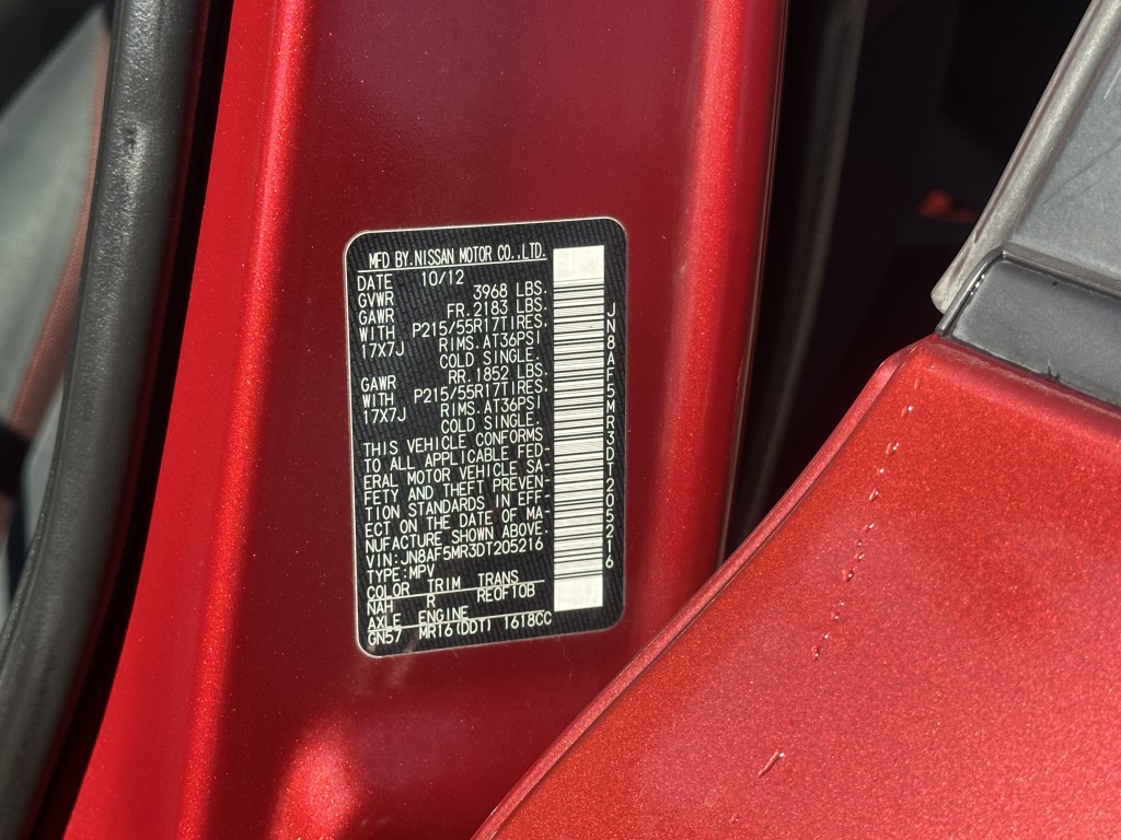 | VIN #: | JN8AF5MR3DT205216 |