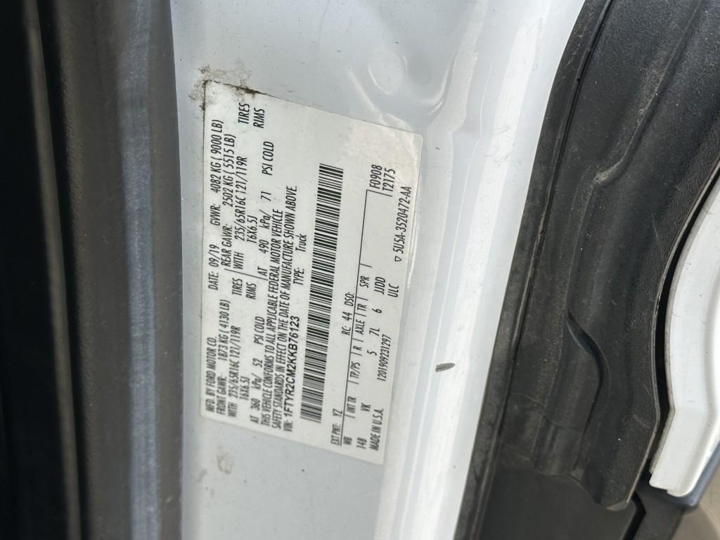 | VIN #: | 1FTYR2CM2KKB76123 |