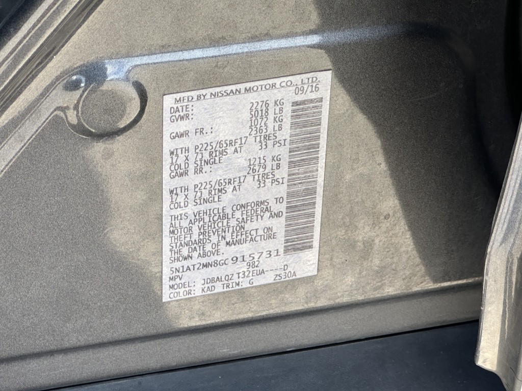 | VIN #: | 5N1AT2MN8GC915731 |