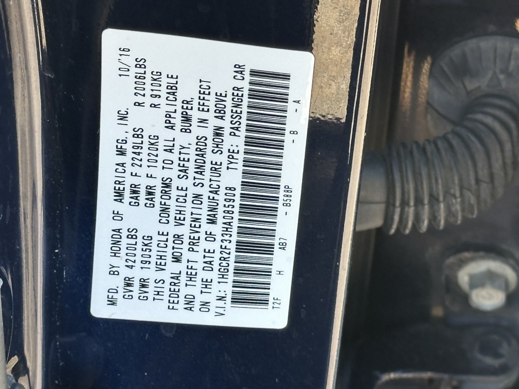 | VIN #: | 1HGCR2F33HA085908 |