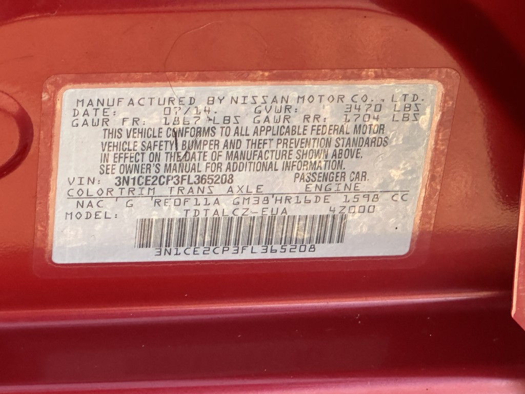 | VIN #: | 3N1CE2CP3FL365208 |