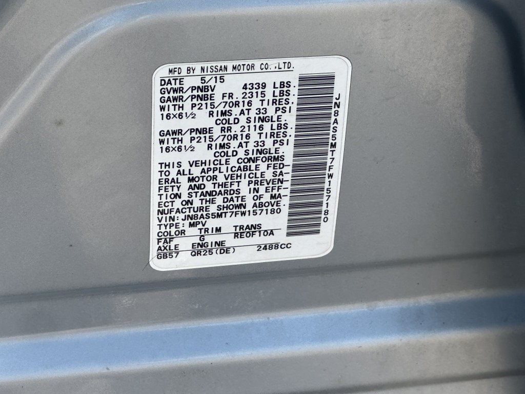 | VIN #: | JN8AS5MT7FW157180 |