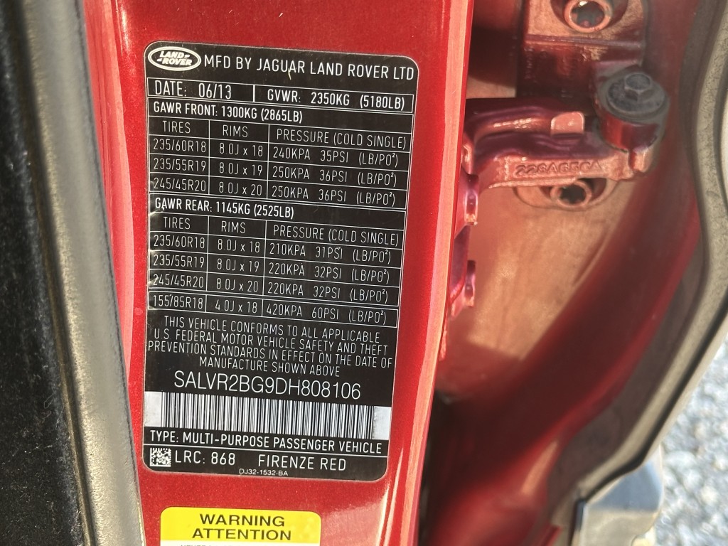 | VIN #: | SALVR2BG9DH808106 |