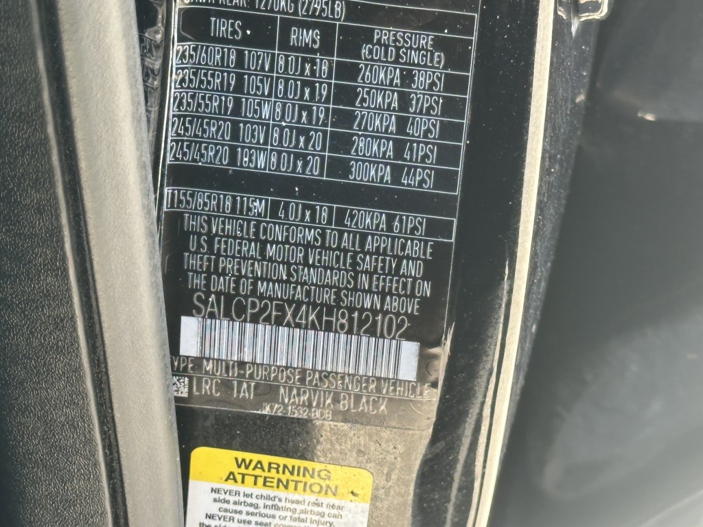 | VIN #: | SALCP2FX4KH812102 |