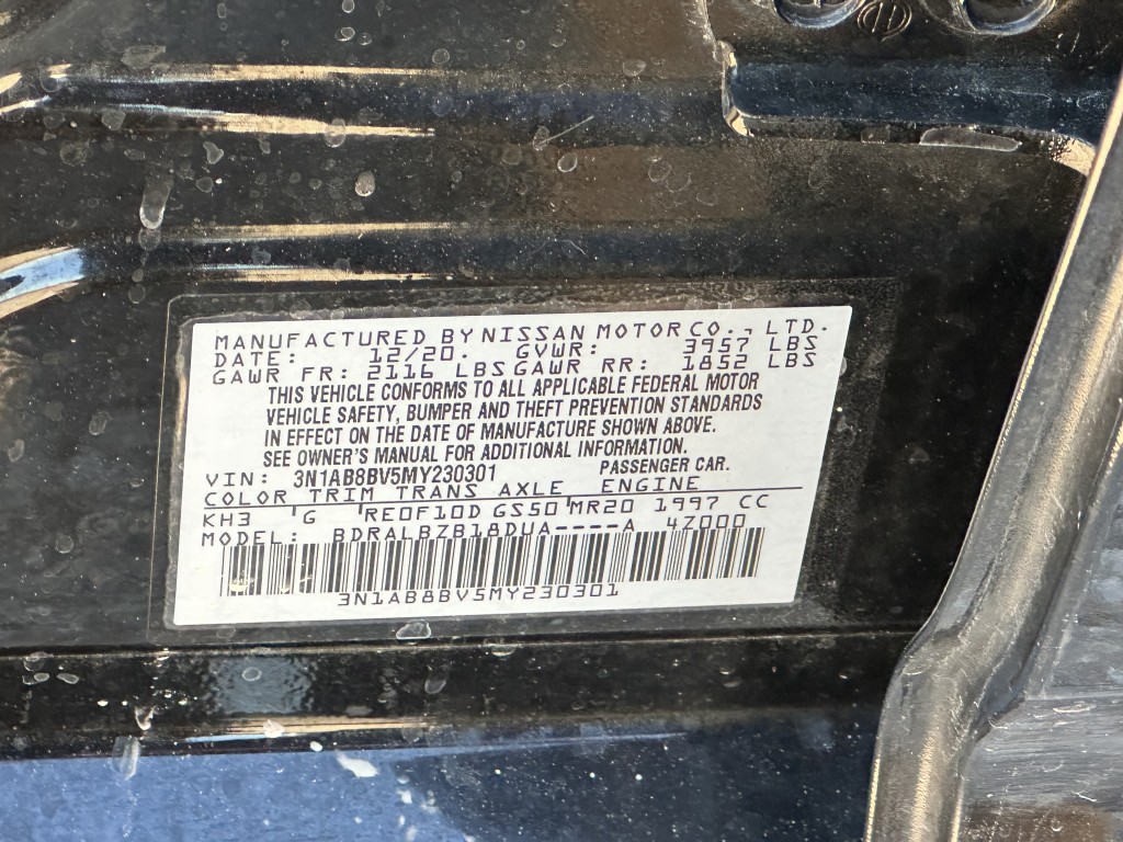 | VIN #: | 3N1AB8BV5MY230301 |