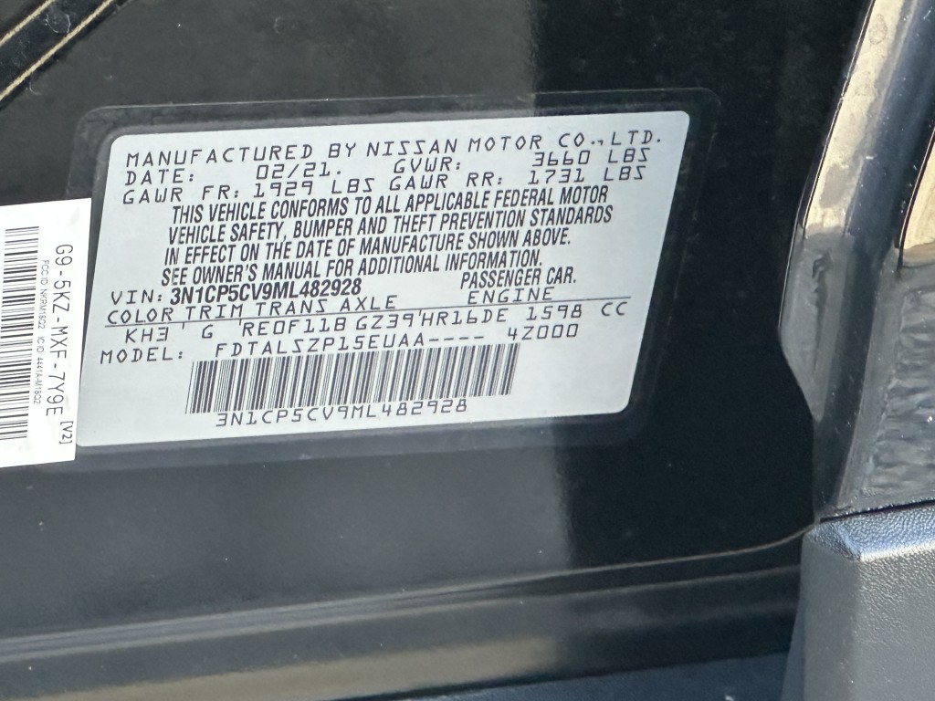 | VIN #: | 3N1CP5CV9ML482928 |