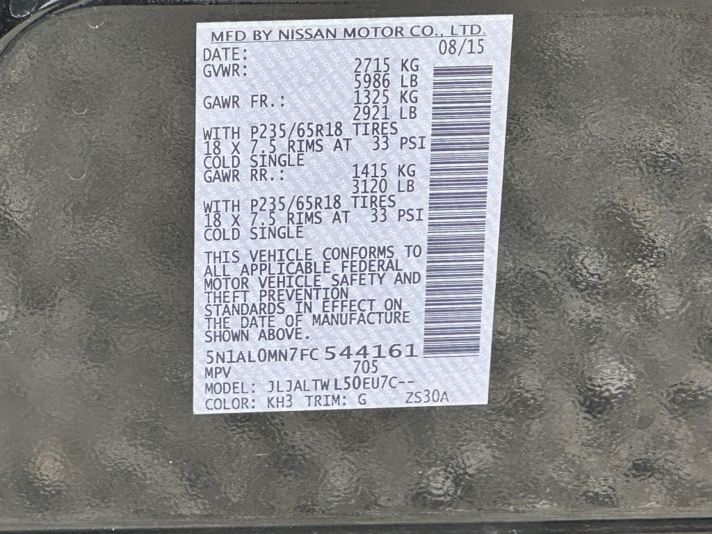 | VIN #: | 5N1AL0MN7FC544161 |