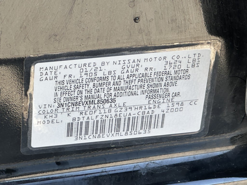 | VIN #: | 3N1CN8EVXML850635 |