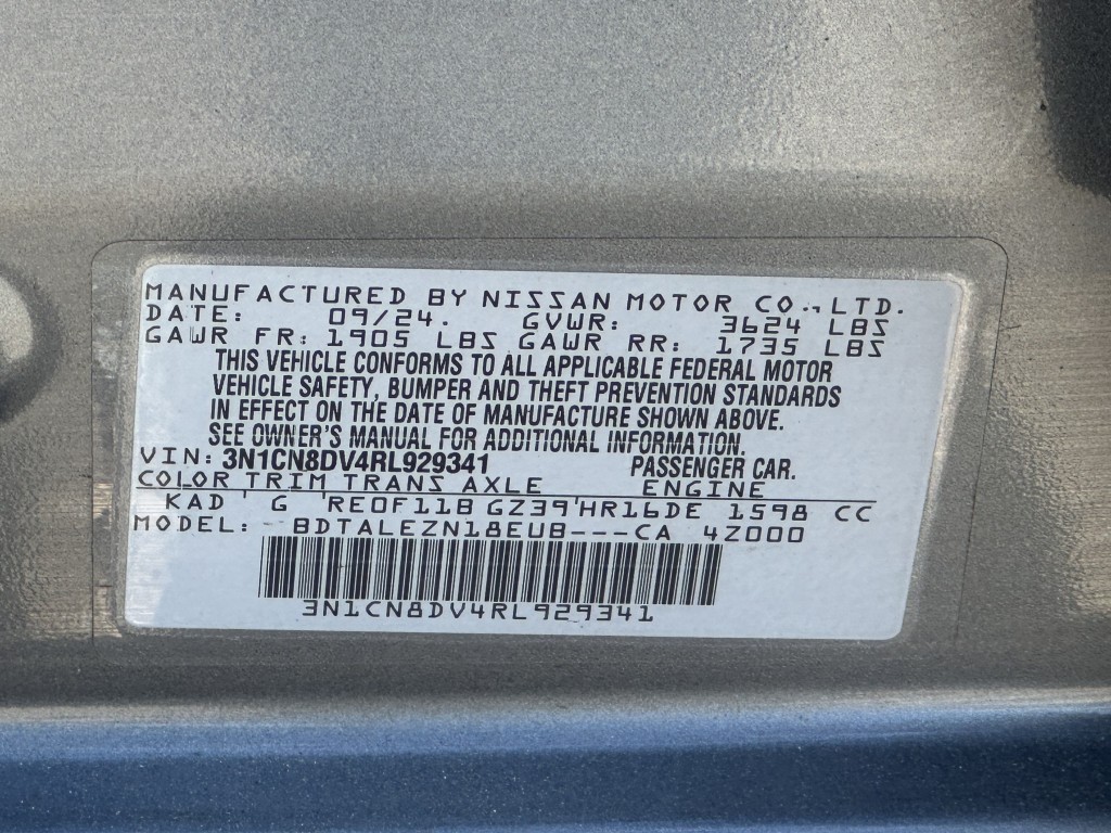 | VIN #: | 3N1CN8DV4RL929341 |